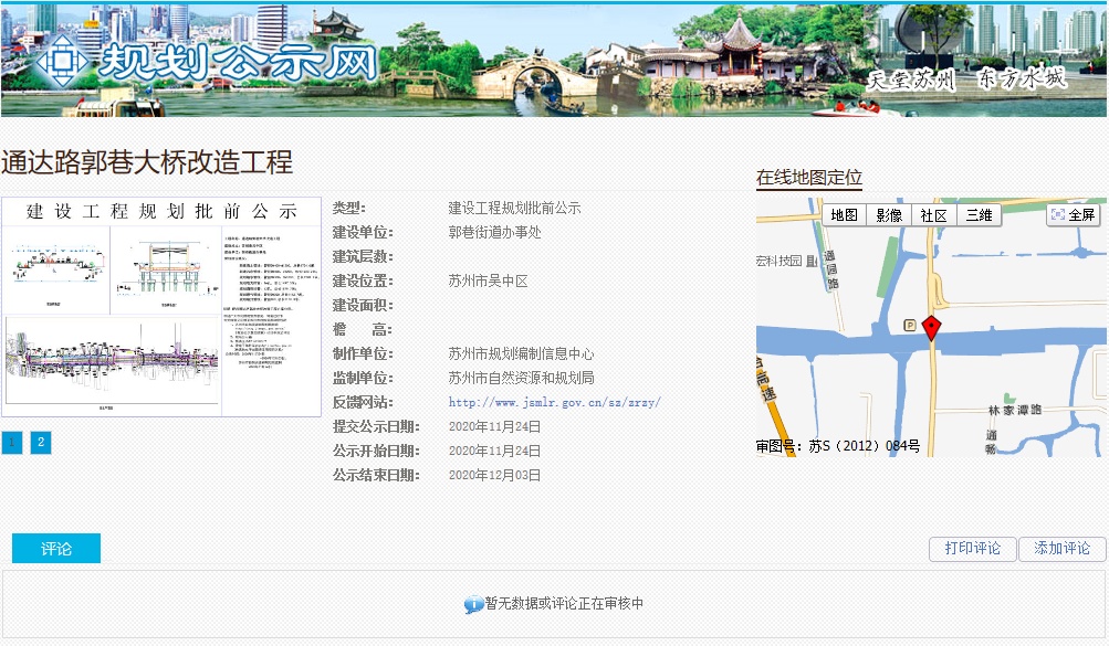 苏州规划公示网近期也公布了通达路郭巷大桥改造工程,公示说明了郭巷大桥改造工程的道路、桥梁和管线建设概况。