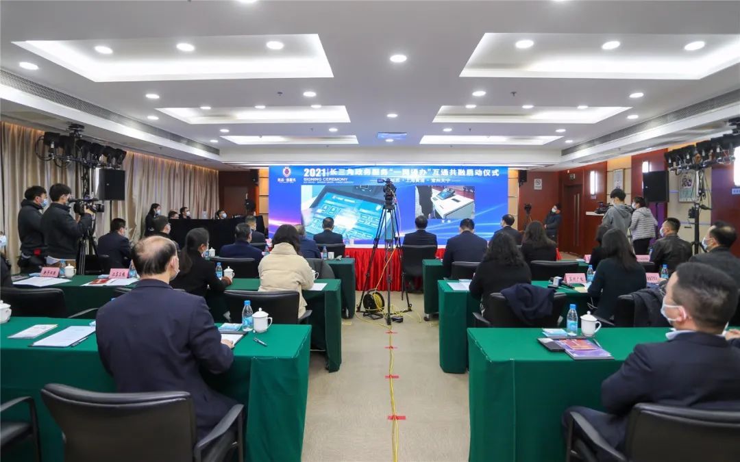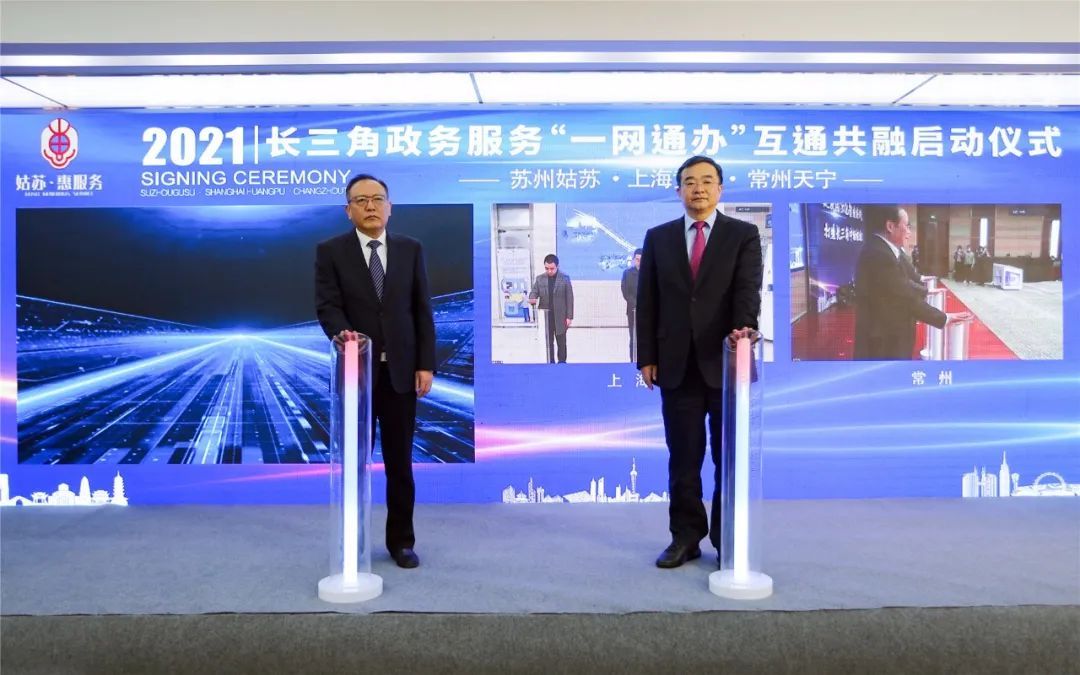 仪式现场,姑苏区行政审批局与上海市黄浦区行政服务中心签署完成《长三角一体化“一网通办”政务服务互通共融合作协议》。