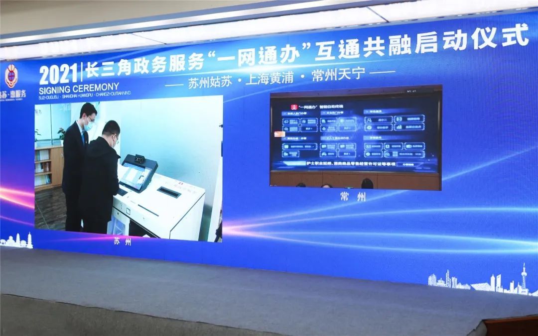 当天,通过视频联动,苏州市姑苏区和上海市黄浦区、常州市天宁区分别完成政务服务合作备忘录“云签约”。