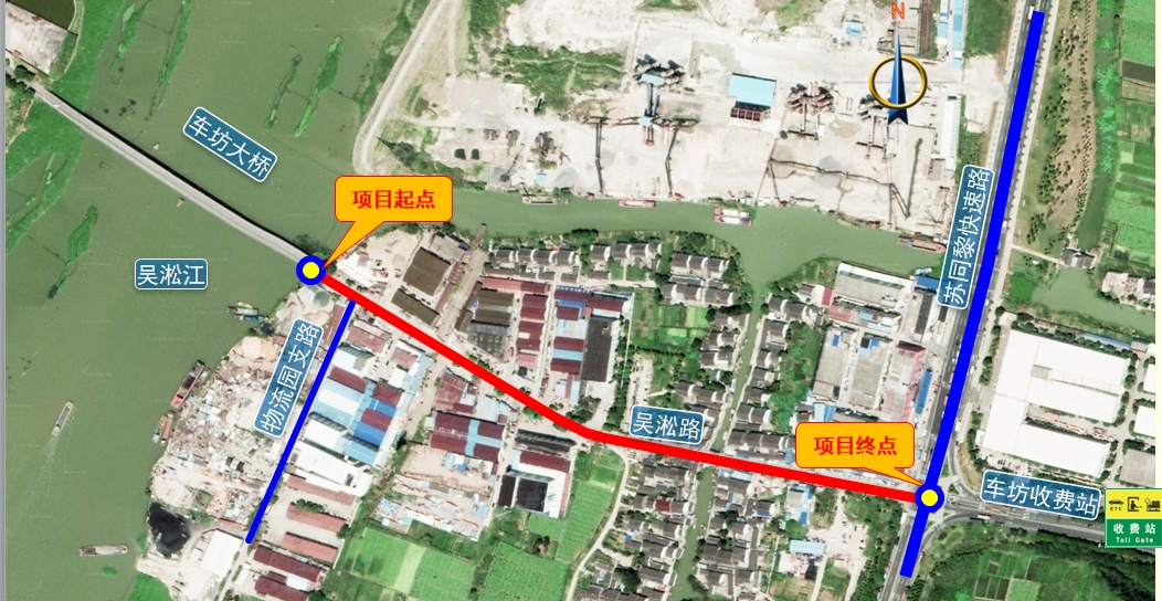 星塘街南延工程,位于吴中区甪直镇,起于车坊大桥主桥东侧,以高架桥形式向东上跨苏同黎公路地面道路,止于现有绕城高速车坊互通收费站前。