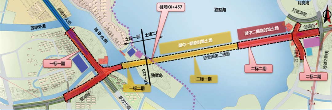 该项目是苏州市总体规划“八纵八横”全市道路体系中穿越独墅湖屏障的一条东西向城市主干路,是苏州市城市路网的主骨架,属于苏州国际物流快速通道项目的重要组成部分,整个工程计划于2021年底基本建设完成。