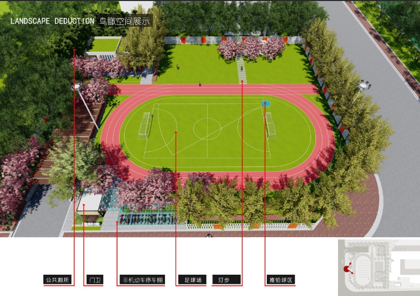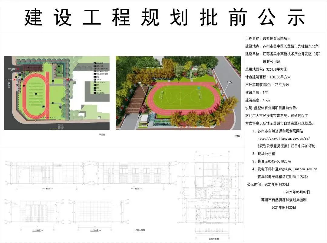 该项目建设总用地面积为3261.8平方米,其中,计容建筑面积130.88平方米,不计容建筑面积178平方米,建设内容包括跑道、足球场、单双杠场、篮球场等。