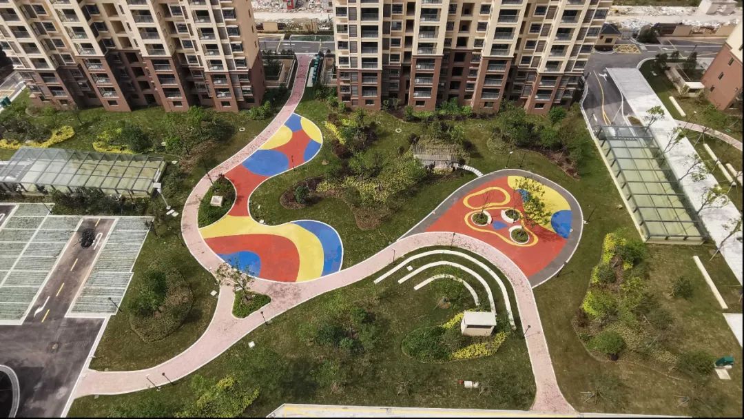 门口的综合楼还配备了日间照料中心、喜宴厅、物业用房,目前也在紧锣密鼓地装修中,儿童游乐设施、健身设施、电动车充电桩等也将后续统一安装。