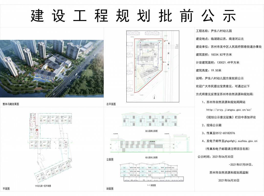 日前,苏州规划公示网发布尹东八村幼儿园建设工程规划批前公示。