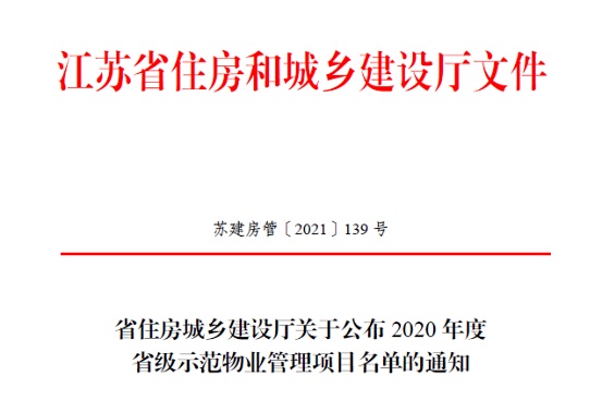 近日,省住房城乡建设厅印发通知,公布了2020年度江苏省省级示范物业管理项目,我市共有34个项目成功入选,获评数量位列全省第一。