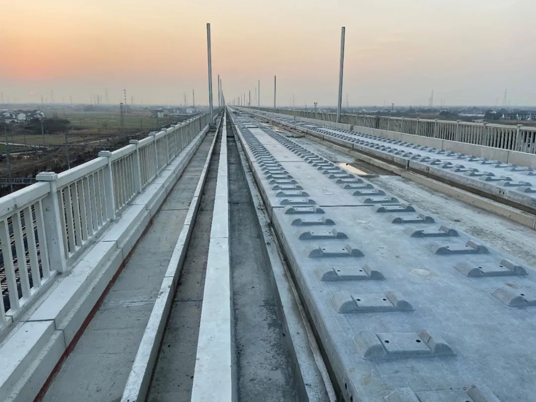 江苏南沿江铁路苏州段完成桥梁工程,正在开展铺轨、四电工程施工。