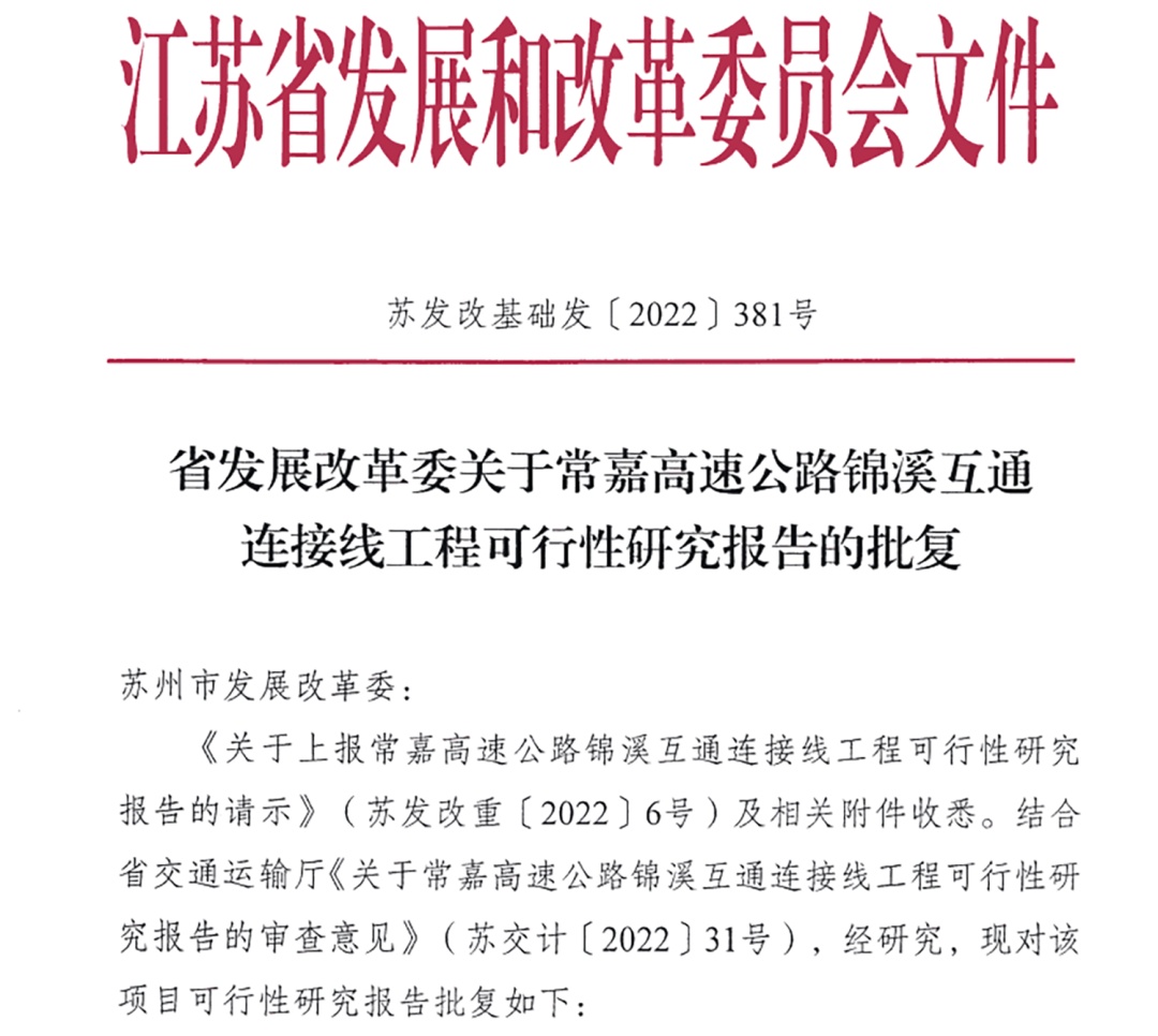 常嘉高速公路锦溪互通连接线工程取得工可批复,为项目年内开工奠定较好的工作基础。