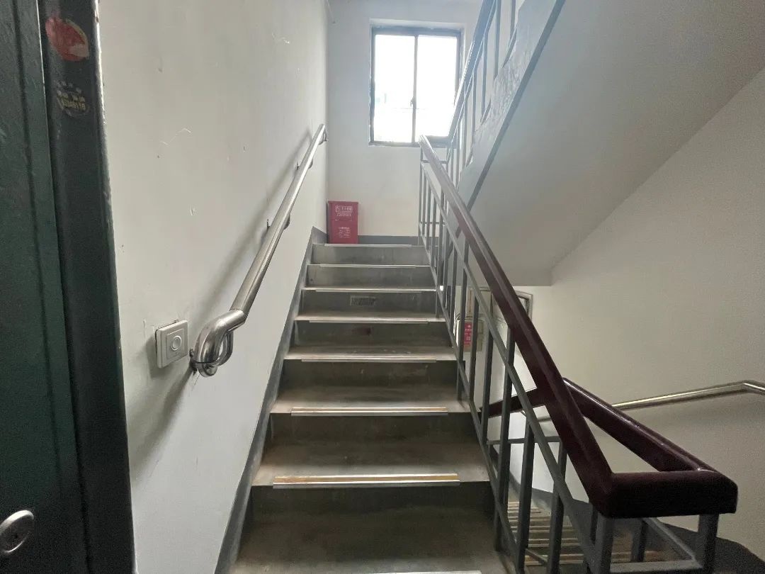除了外立面,小区楼道也焕然一新,防滑条、两侧扶手、消防设施、还有为老人爬楼提供的折叠座椅。