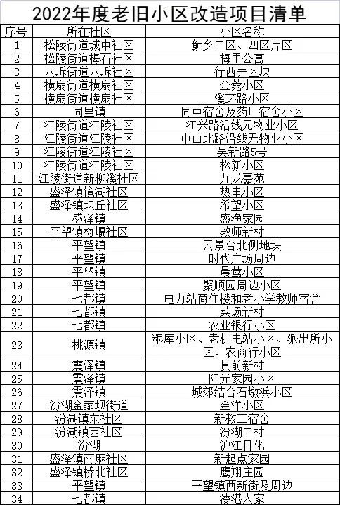 吴江2022年计划改造的34个老旧小区名单(来源:吴江区住建局)