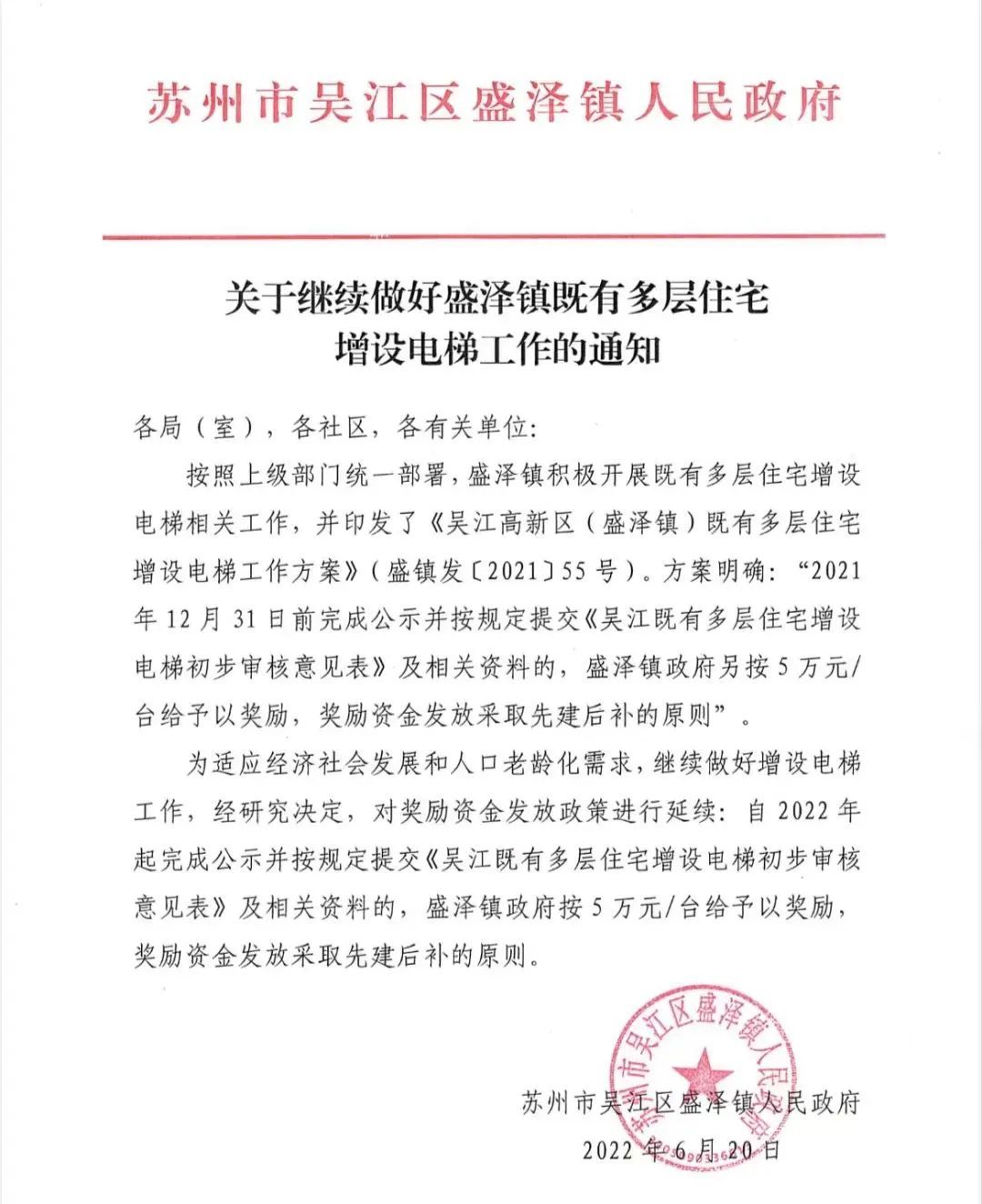 值得一提的是,这两部交付使用的电梯,在居民“自掏腰包”完成建设后,还可以享受20万元/台的区级补助和盛泽镇人民政府给予的5万元/台奖励金。