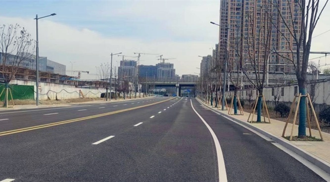 项目西起方桥路,东至永昌路,北侧紧邻京沪高铁,南侧为3E数字智造园项目。道路全长730米,宽24米,为双向四车道。目前,项目已完工,预计将于本月底通车。