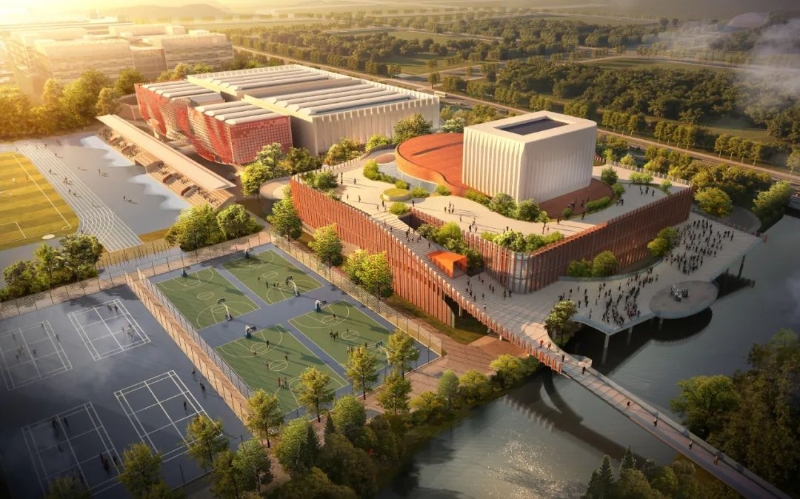 公共教学楼组团的建设融合苏州园林特色的空间环境,通过不同尺度的庭院串联,视线通廊组织以及连廊的布置,打造具有园林感的室外空间环境,为学生提供丰富舒适的学习场所。公共教学楼组团项目总建筑面积约48.16万平方米,建设内容包括公共教学楼、科研综合体、图书馆科技信息中心、食堂、校医院、运营服务综合体等,贯彻“以人为本”的设计理念,营造“学习-科研-交往-生活”一体化场所。